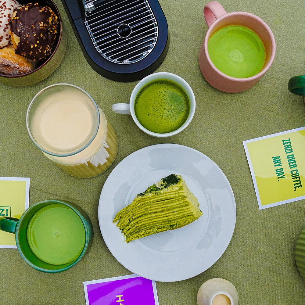 Ceremonial Nespresso®-compatible matcha pods. Available in Pure and Vanilla flavour.